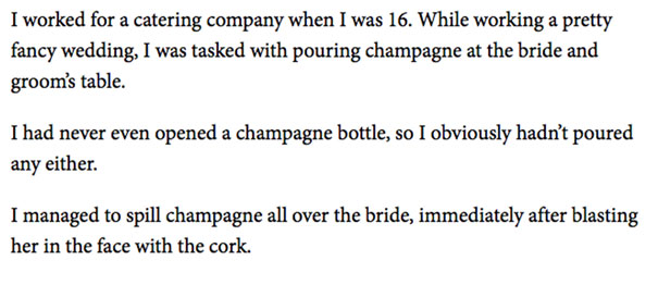 Can’t say he didn’t try, but maybe a wedding shouldn’t have been the place to test out those champagne-popping skills.